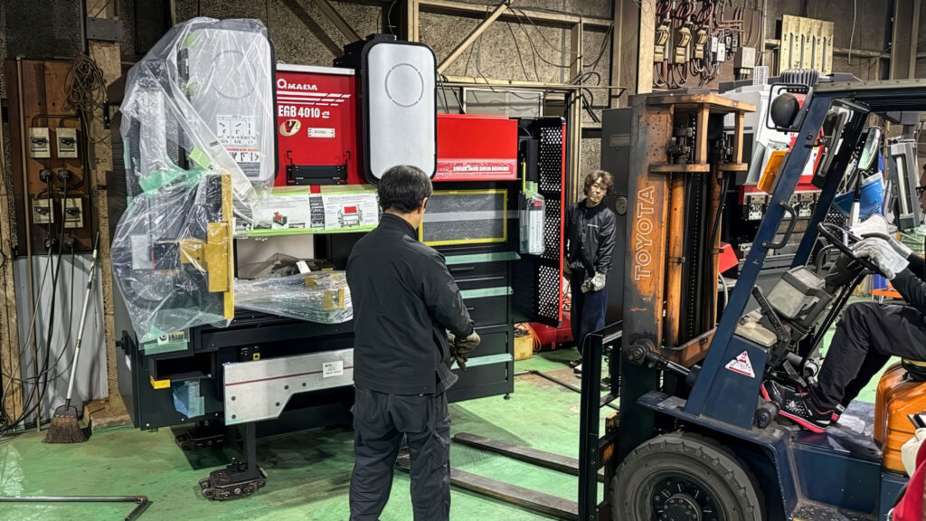 久保田工業所ではこのたび、薄板・精密板金加工の品質向上と生産効率強化を目的に、AMADA製 エルゴノミクス 小物サーボベンディングマシン「EGB-e シリーズ EGB-6013e」を新たに導入いたしました。本記事では、搬入の様子から実際の操作風景まで、写真を交えてご紹介いたします。